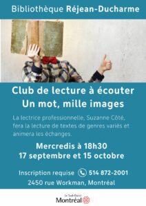 Faites partie d’un club de lecture immersif à la bibliothèque Réjean-Ducharme.